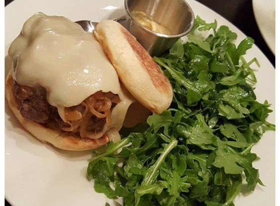 Ingredients: 3 tablespoons butter 5 onions, 4 thinly sliced and 1 peeled 1 bay leaf Sea salt and pepper 1/2 teaspoon ground thyme 1 cup beef consomme 1 1/2 cups sour cream 2 pounds ground chicken 1/2 pound of Gruyere Cheese Fresh Arugula About 1/4 cup worcestershire sauce (eyeball it) A handful flat-leaf parsley, finely chopped EVOO, for drizzling 6 brioche buns, split Directions: Heat the butter in a large skillet over medium heat. Add the sliced onions and bay leaf; season with salt, pepper and the thyme. Cook, stirring occasionally, until ...