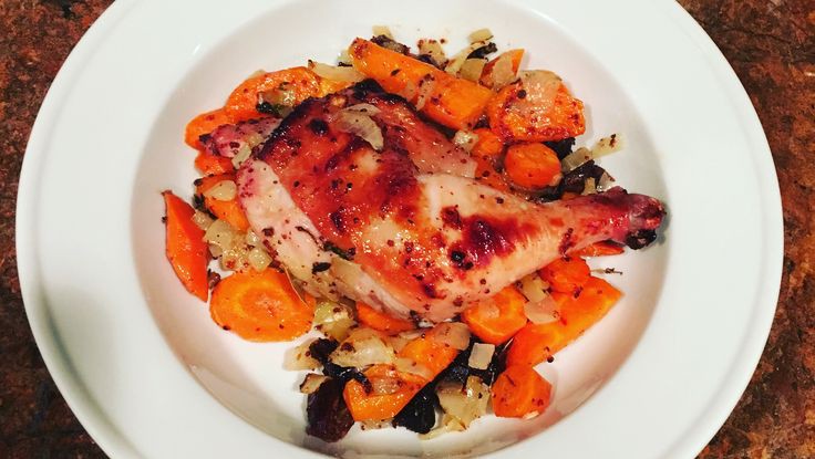 This dish celebrates the joy of cooking an entire meal on only one sheet pan —warm, comforting, and quick on cleanup. Sweet and savory chicken roasts atop a bed of vegetables. 1. Prepare Ingredients Preheat oven to 450°F. Halve orange. Rinse carrots and thinly slice on a diagonal. Peel onion, halve, and thinly slice. Cut dates crosswise into ¼-inch slices. Rinse chicken and pat dry with paper towel. 2. Make Marinade In a large shallow bowl or resealable plastic bag, combine bay leaf, honey, whole herb sprigs, mustard, as much Aleppo pepper as desired, juice of 1 orange, and 1 ...