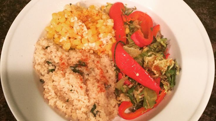 These vegetarian corn bowls make my mouth water every time. Bulgur wheat is a staple grain in Middle Eastern and Mediterranean cuisines. It's often used in salads and sometimes in place of rice. Made from parboiled cracked wheat, it adds a nutty flavor to these happy corn bowls. Hearty and quick cooking bulgar wheat is combined with peak season Brussels sprouts and red bell pepper, then topped with ridiculously creamy corn that borrows its flavors from "elote" - a popular Mexican street food of corn on the cob. 1. Prepare Ingredients Preheat oven to 400°F. Bring a medium pot of water to a ...
